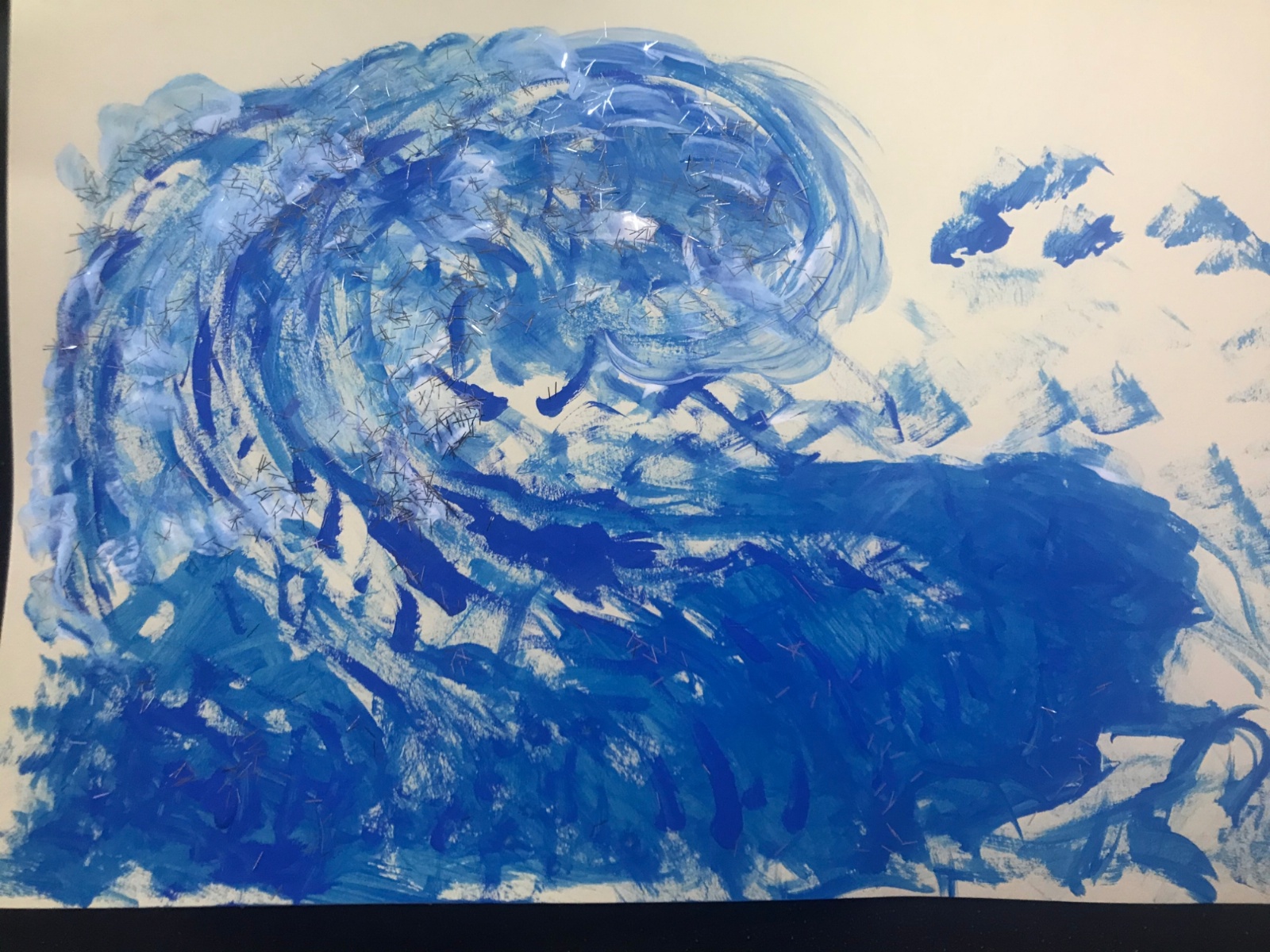 Archie has thought carefully about his shades and textures to create his wave picture.